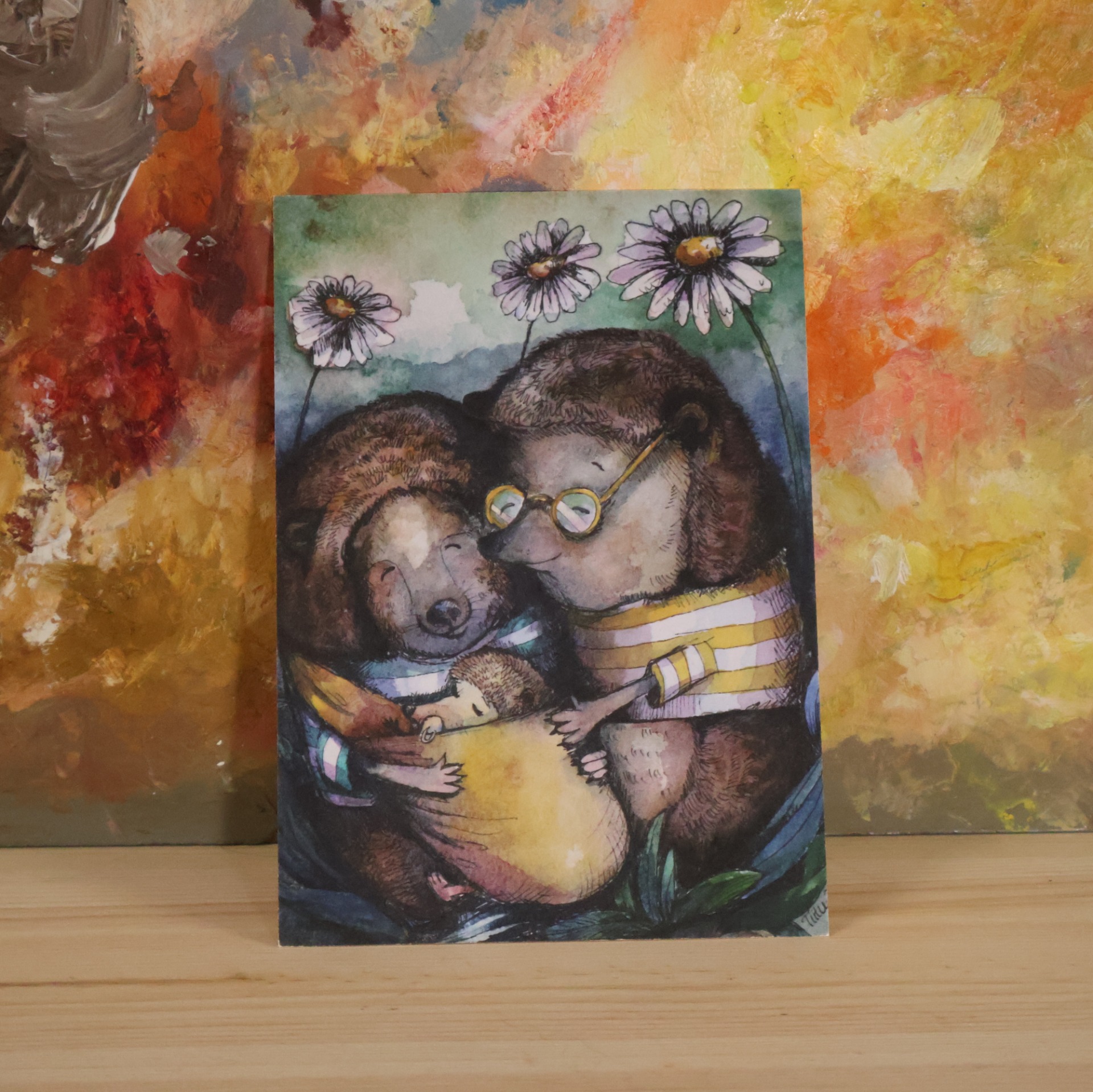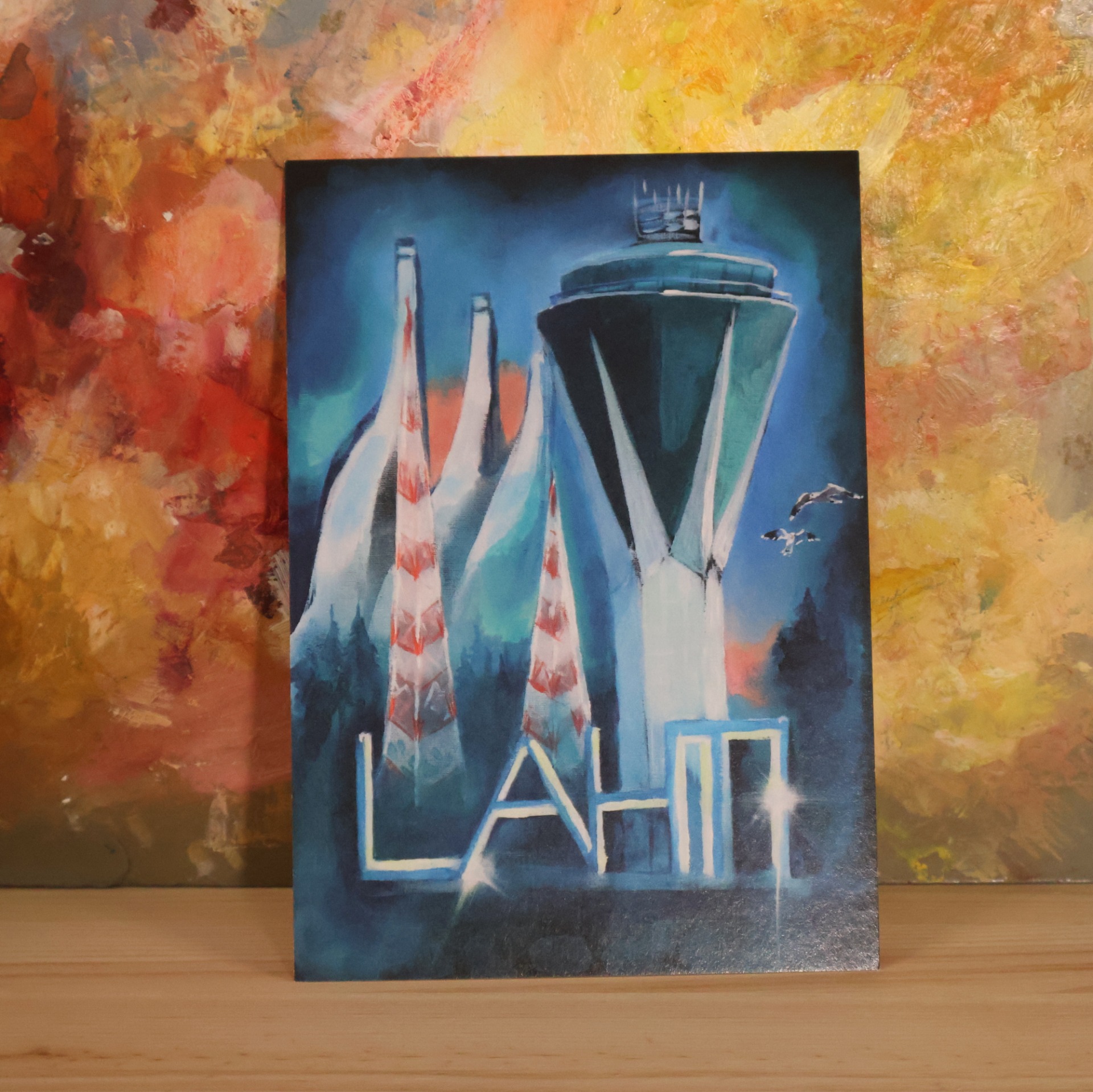 Kiiltäväpintainen postikortti 400 grammaista korttikartonkia. Takana osoiteviivasto ja logo.